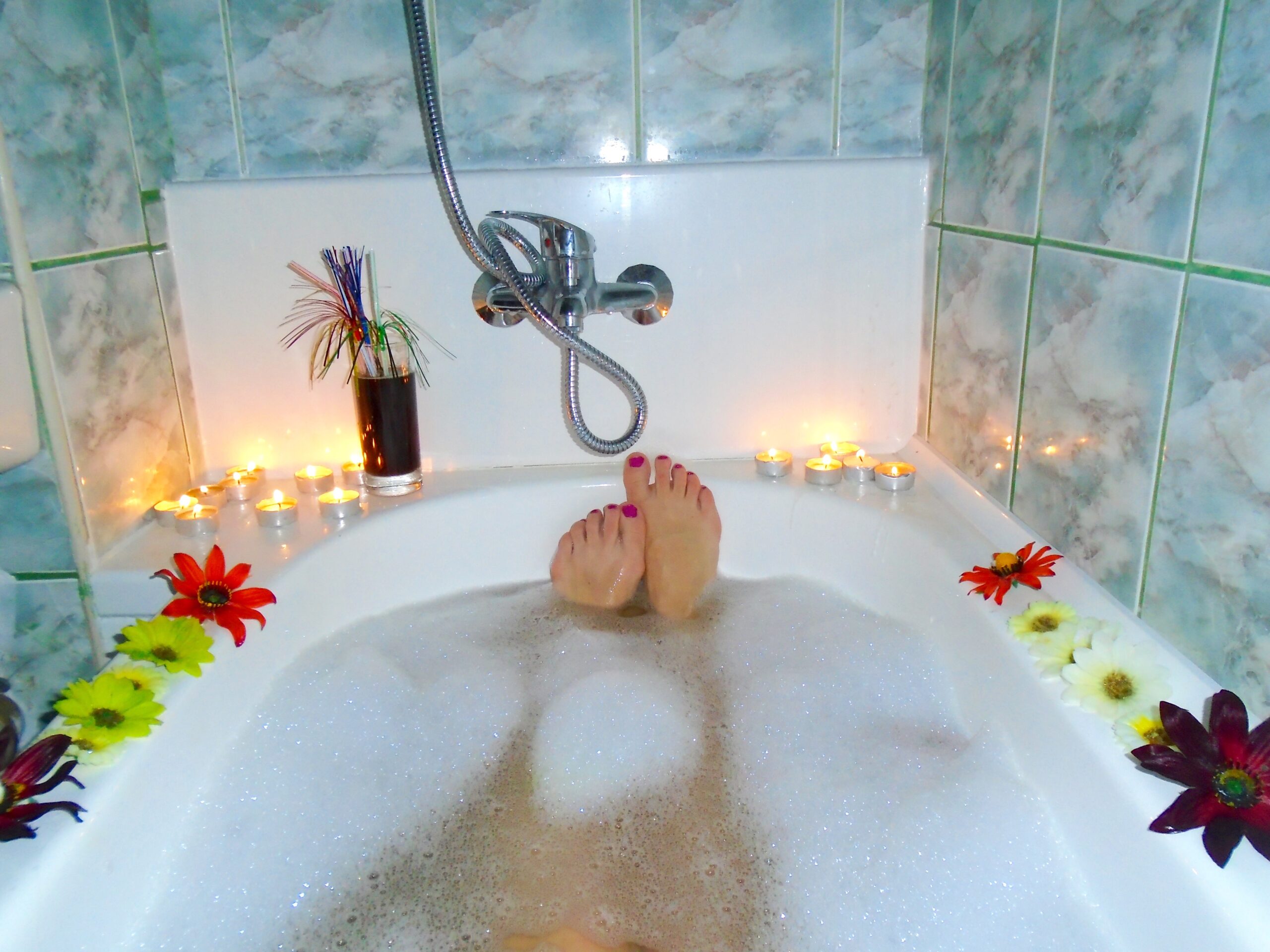 ២. ងូតទឹកក្តៅអ៊ុនៗ ៖ បន្ទាប់ពីមានសៀវភៅនៅក្នុងដៃដើម្បីអាន ជាការកម្សាន្តហើយ សកម្មភាពមួយទៀតដែលជួយបន្ធូរអារម្មណ៍នោះ គឺការងូតទឹកក្តៅអ៊ុនៗ បើមានល្អាងទឹកសម្រាប់ត្រាំខ្លួន រឹងរឹតតែប្រសើរ បន្ទប់ទឹកមិនមែនសម្រាប់តែប្រើប្រាស់បន្ទោរបង់ ឬងូតទឹកជំរះកាយតែប៉ុណ្ណោះទេ គួរមានការប្រែក្លាយទៅជាកន្លែងមួយដែលផ្តល់នូវការស្មឹងស្មាត។ ដូច្នេះរៀបចំបន្ទប់ទឹកឱ្យបានស្អាត ដោយការប្រើប្រាស់អំពូលភ្លើងស្របនឹងទីតាំង ឬការជ្រើសរើសទៀនក្រអូបសម្រាប់ដាក់ក្នុងបន្ទប់ទឹក ដើម្បីបន្ថយភាពតានតឹង និងបង្កើនភាពស្រស់ស្រាយពេលងូតទឹក។