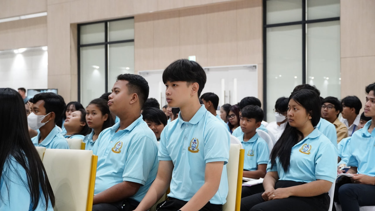 សិស្ស និស្សិតស្ដាប់ការចែករំលែកបទពិសោធន៍របស់ ស្ថាបនិករៀនថត