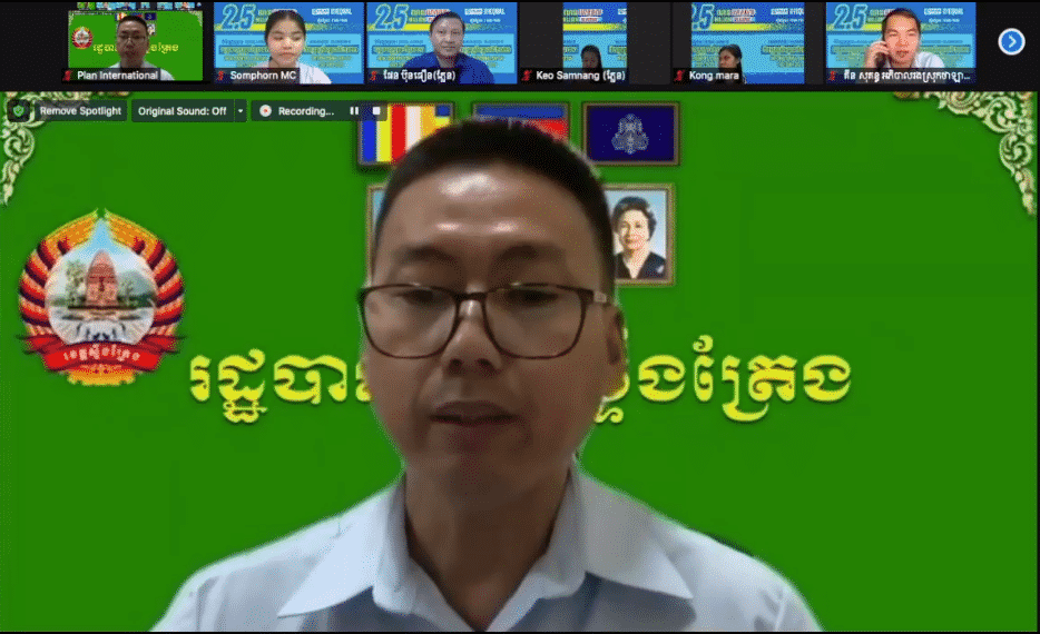 ឯកឧត្តម យង់ សុវឌ្ឍនា អភិបាលរងខេត្តស្ទឹងត្រែង បានថ្លែងអំណរគុណដល់អង្គការភ្លែនអន្តរជាតិកម្ពុជា ដែលតែងតែមានការសហការយ៉ាងល្អ ជាមួយសាលាខេត្ត មន្ទីរនានាជុំវិញខេត្ត សាលាស្រុក និងការិយាល័យជុំវិញស្រុក អាជ្ញាធរភូមិឃុំ ជាពិសេសមន្ទីរអប់រំយុវជន និងកីឡា មន្ទីរសុខាភិបាល មន្ទីរអភិវឌ្ឍន៍ជនបទខេត្ត និង មន្ទីរកិច្ចការនារីខេត្ត ដើម្បីធ្វើការលើកស្ទួយជីវភាពប្រជាពលរដ្ឋមានលក្ខណៈប្រសើឡើងតាមរយៈការផ្តល់សេវាកម្មនានាដែលប្រជាពលរដ្ឋកំពុងជួបប្រទះ ។ ទន្ទឹមនឹងនេះ អង្គការភ្លែនតែងតែជួយដោះស្រាយនូវបព្ហានានាដូចជា ការឆ្លើយតបគ្រោះទឹកជំនន់ បព្ហាអនាម័យ ការអប់រំ និងសុខភាពក្មេងស្រី និងកុមារនៅតាមតំបន់ដាច់ស្រយាល ។