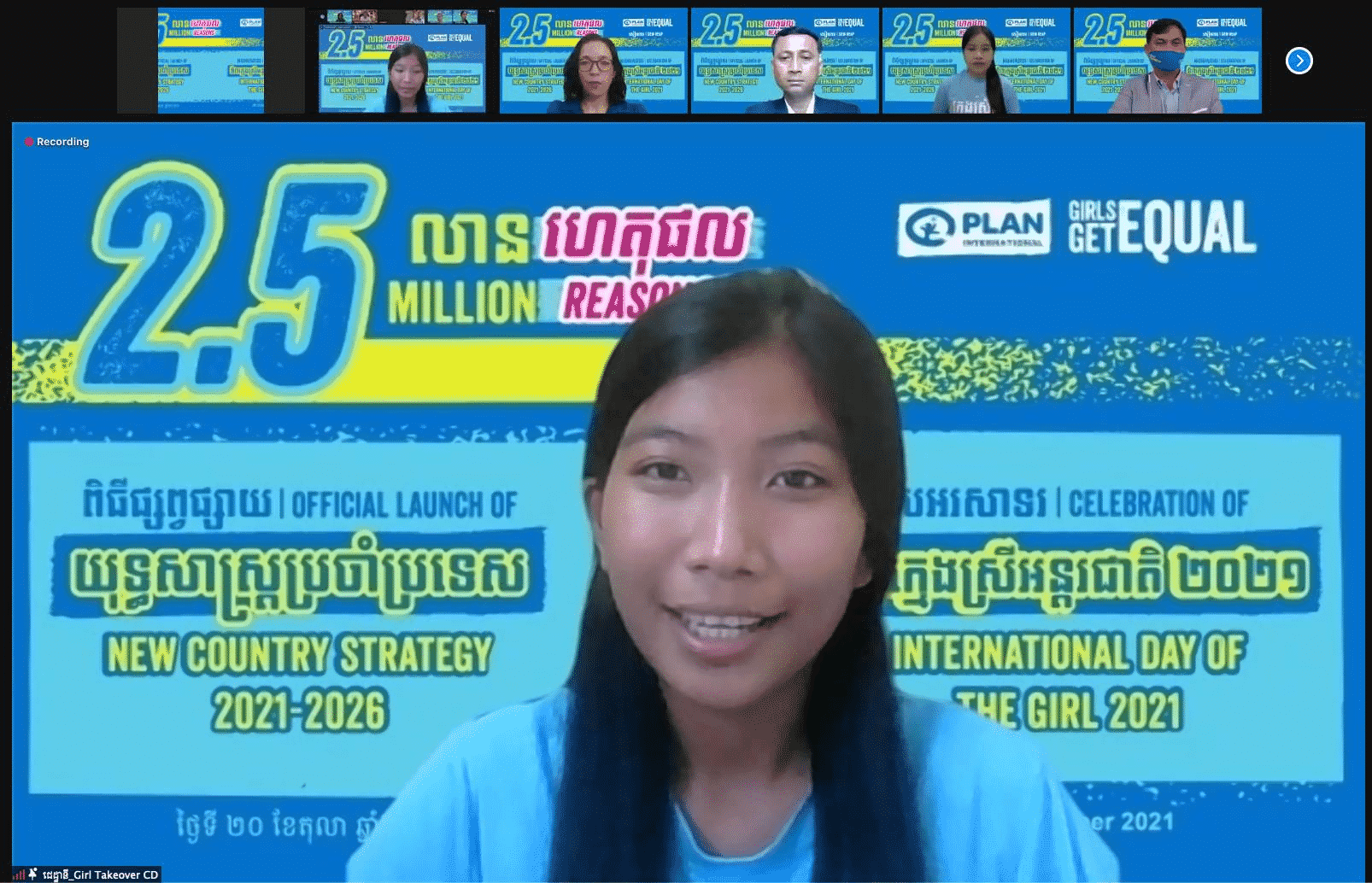 លោកស្រី គ្វីននេត វ៉ង នាយិកាប្រចាំប្រទេសនៃអង្គការភ្លែនអន្តរជាតិកម្ពុជាមានប្រសាសន៍ថា ភាពជោគជ័យនេះគឺជាជោគជ័យរបស់ក្រុមយុវនារី និងស្រ្តីវ័យក្មេងទាំង ៣៣ រូបដែលបានសហការគ្នាបង្កើត និងចូលរួមយ៉ាងសកម្មក្នុងព្រឹត្តិការណ៍ទាំងនេះ ជាពិសេសជាពិធីការិនីក្នុងកម្មវិធីនេះ ជាអ្នកដែលចែករំលែកទស្សនៈរបស់ពួកគេនៅក្នុងវីដេអូខ្លីៗ ជាវាគ្មិនវ័យក្មេងក្នុងការពិភាក្សាតុមូល និងក្រុមរៀបចំកម្មវិធីទាំងមូល ។