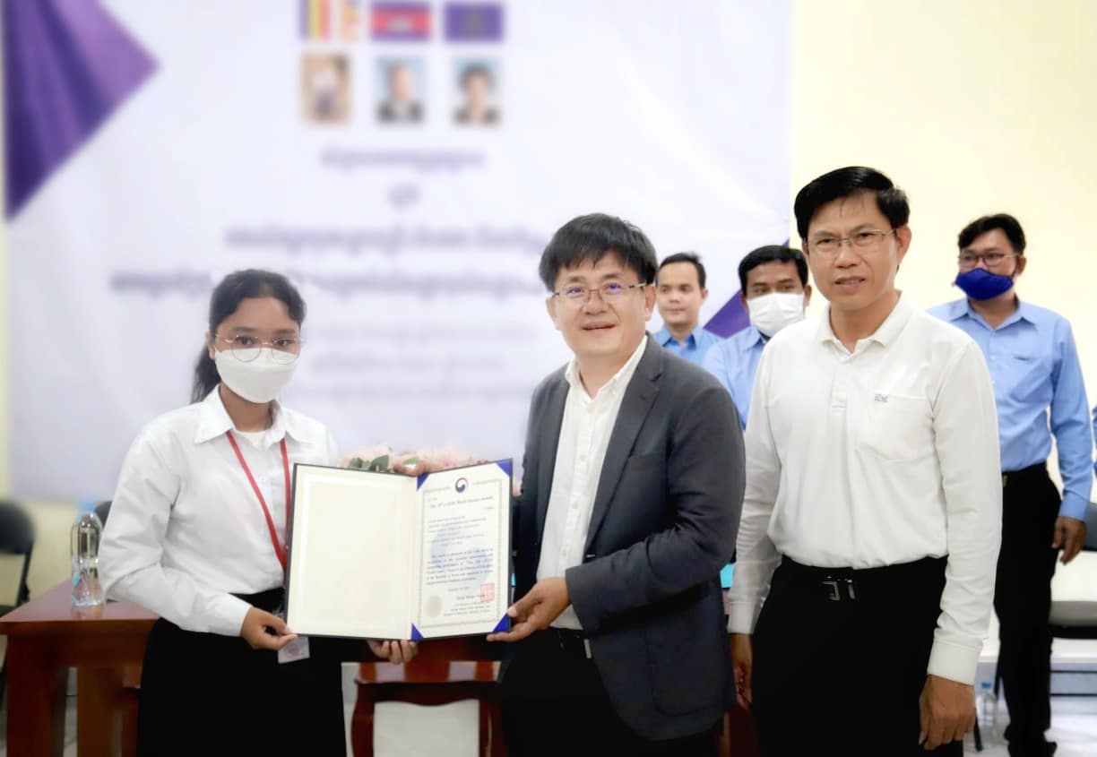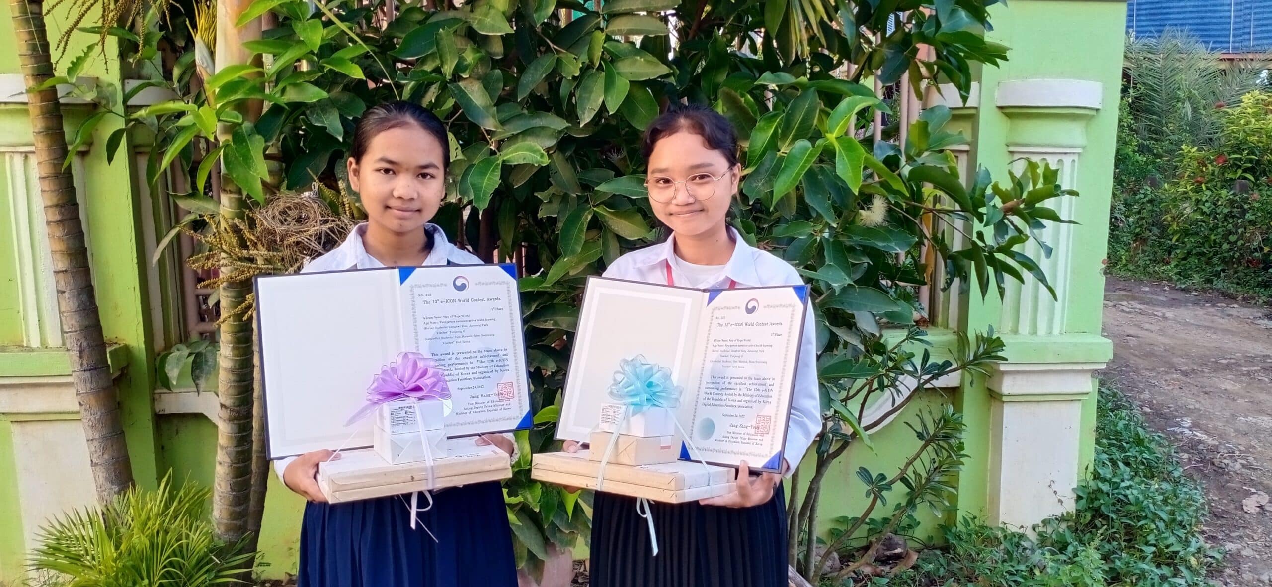 កំពង់ចាម – សិស្សកម្ពុជាចំនួន២រូប សហការជាមួយសិស្សមកពីប្រទេសកូរ៉េ បានឈ្នះពានរង្វាន់លេខ១ នៃក្នុងវគ្គផ្តាច់ព្រ័ត្រ នៃកម្មវិធីប្រកួតប្រជែង The 12th e-Learning International Contest of Outstanding New Ages (e-ICON) កាលពីថ្ងៃទី២៤ ខែតុលា កន្លងទៅនេះ។