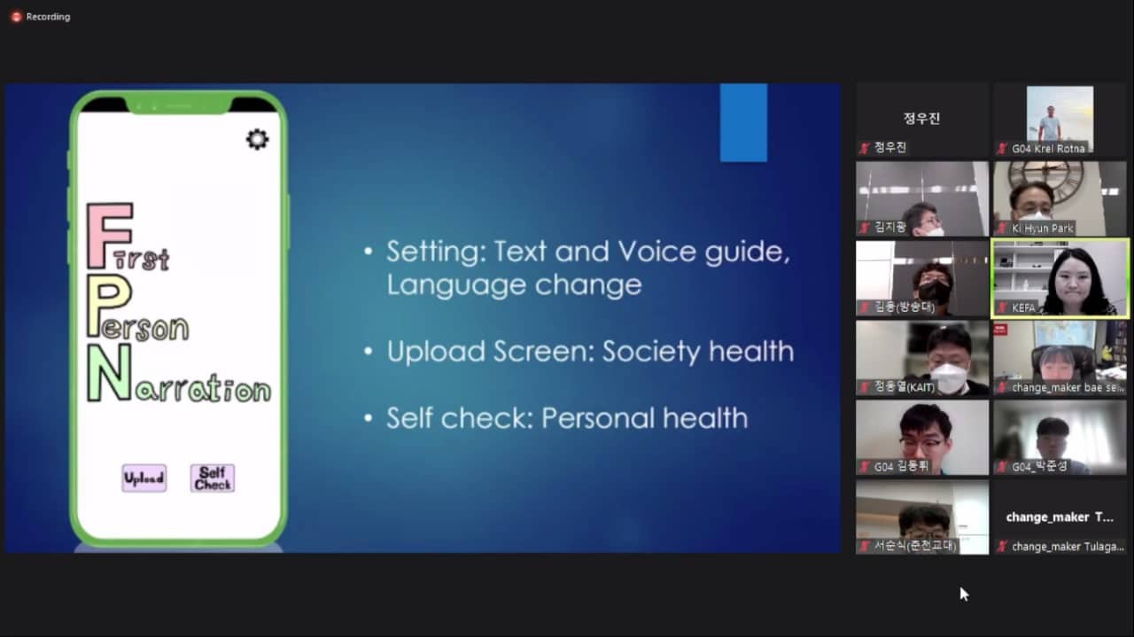 សិស្សានុសិស្សកម្ពុជាទាំង២រូបដែលបានឈ្នះពាន គឺ កញ្ញា ហេន ម៉ារ៉ានីត និងកញ្ញា មុំ ស្រីនាង ជាសិស្សនៃវិទ្យាល័យ សម្ដេច ហ៊ុន សែន ពាមជីកង ដែលបានសហការជាមួយសិស្សានុសិស្សកូរ៉េ ជាក្រុមមួយដែលមានឈ្មោះថា Steps of Hope World G04 ក្នុងការបង្កើតកម្មវិធីទូរស័ព្ទដៃដែលមានឈ្មោះថា First Person Narration – Active Health Learning។