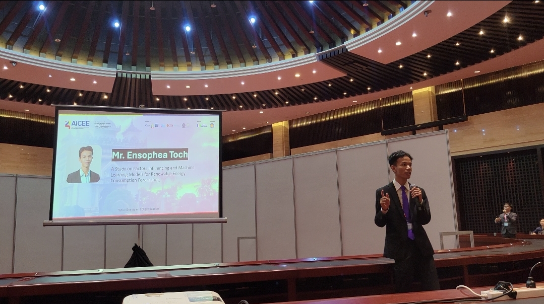 យុវជន តូច ឥនសុភា បន្ថែមថា ប្រធានបទដែលរូបគេបានលើកយកទៅធ្វើបទបង្ហាញមានចំណងជើងថា “A Study on Factor Influencing Machine Learning Models for Renewable Energy Consumption Forecasting” ។ នៅក្នុងអត្ថបទនេះ រូបគេ បានសិក្សាពីកត្តាដែលជះឥទ្ធិពលទៅលើថាមពលបង្កើតឡើងវិញ។ ក្នុងនោះ បានបង្ហាញពីការសិក្សាពី សេដ្ឋកិច្ចសង្គម បរិស្ថាន ភូមិសាស្ត្រ ដូចជា តម្លៃនៃថាមពល គោលនយោបាយរដ្ឋាភិបាល និងលក្ខខណ្ឌអាកាសធាតុ ដែលជះឥទ្ធិពលទៅលើថាមពលកកើតឡើងវិញ។ ការសិក្សានេះ ក៏បានរំលេចនូវការវាយតម្លៃសិក្សារបស់ machine learning, deep learning artificial neural network, support vectors machine, long short term memory Network និង convolutional neural network ដែលជាការសង្កត់ធ្ងន់ទៅលើសារៈសំខាន់នៃការព្យាករណ៍យ៉ាងត្រឹមត្រូវលើថាមពលកកើតឡើងវិញ។ ក្នុងនោះក៏មានការចូលរួមពិនិត្យលើករណីសិក្សាទូទាំងផ្នែកលំនៅឋានពាណិជ្ជកម្ម និងកសិឧស្សាហកម្ម ដោយផ្ដល់នូវការយល់ដឹងអំពីរបៀបដែលគំរូម៉ូឌែល (Models) ផ្សេងៗដំណើរការ។