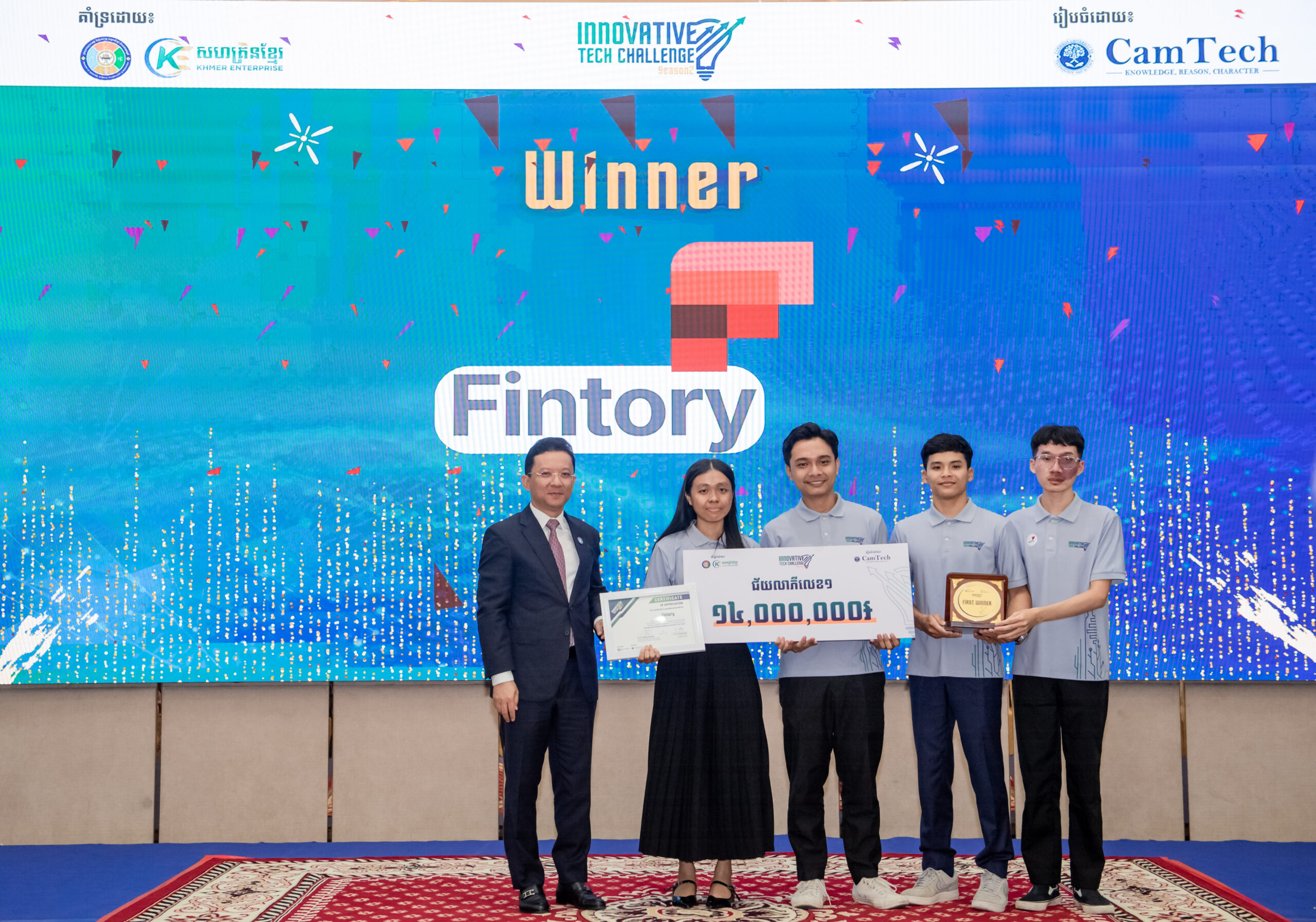 គម្រោងធុរកិច្ចថ្មី (Start-Up) ដែលមានឈ្មោះថា ហ្វីនតូរី (Fintory) របស់យុវជន មកពី បណ្ឌិតសភាបច្ចេកវិទ្យាកម្ពុជា (CADT) ទទួលបានជ័យលាភីលេខ ១ នៅក្នុងកម្មវិធីប្រកួតប្រជែងនវានុវត្តន៍បច្ចេកវិទ្យា (Innovative Tech Challenge) រដូវកាលទី២ កាលពីចុងសប្តាហ៍កន្លងទៅ។