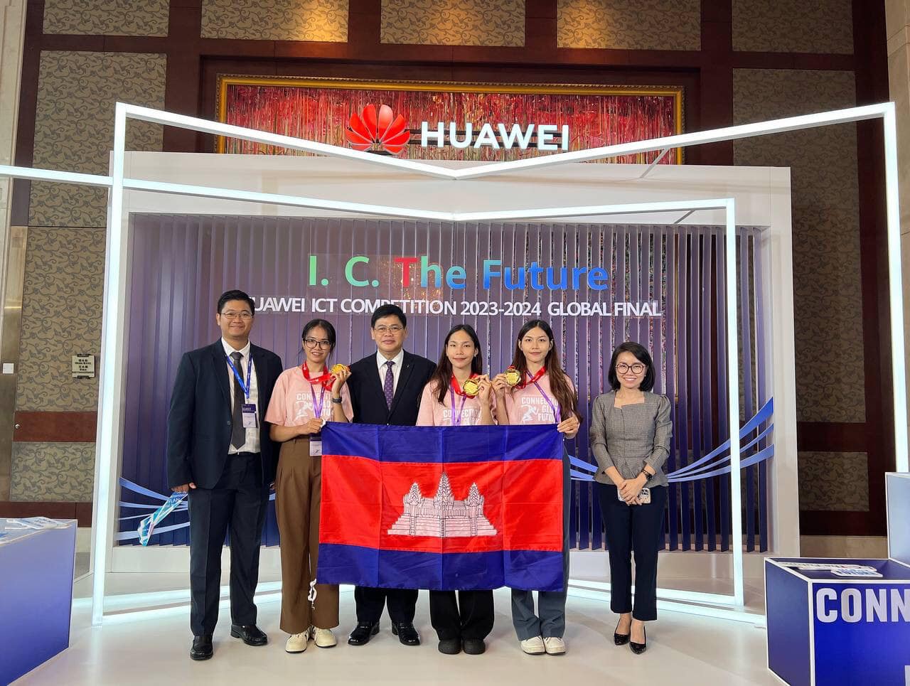 យុវតីតំណាងកម្ពុជា៣រូប បានទទួលជ័យលាភីលេខ៣ ផ្នែក Network Track នៅក្នុងការប្រកួតប្រជែង កម្មវិធី “ប្រកួតប្រជែងពិភពលោកផ្នែកបច្ចេកវិទ្យាគមនាគមន៍ និងព័ត៌មានរបស់ក្រុមហ៊ុន Huawei ឆ្នាំ២០២៣-២០២៤ វគ្គផ្ដាច់ព្រ័ត្រ (Huawei ICT Competition Global Final 2023-2024) នៅទីក្រុង Shenzhen ប្រទេសចិន កាលពីពេលកន្លងទៅថ្មីៗនេះ។