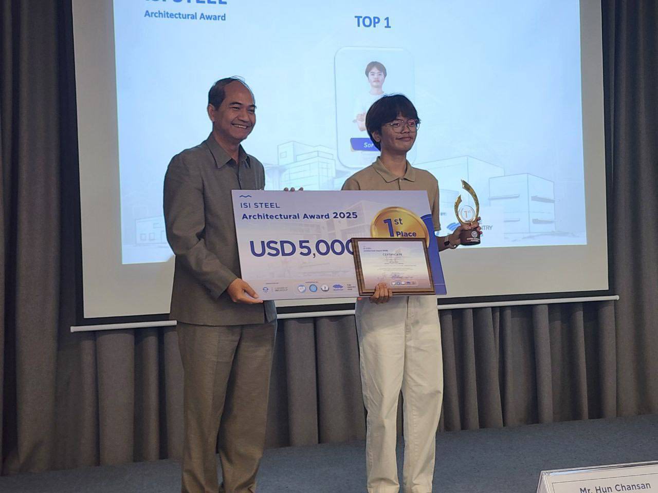 ការប្រកួតពានរង្វាន់ស្ថាបត្យកម្ម ឆ្នាំ២០២៥ ក្រោមប្រធានបទ “ទំនើបកម្មនៃស្ថាបត្យកម្មដោយប្រើប្រាស់ដែកសម្រាប់សាងសង់” រៀបចំឡើងដោយក្រុមហ៊ុន ISI STEEL មានរយៈពេល៥ខែ គិតចាប់ពីដើមខែកញ្ញា ឆ្នាំ២០២៥ ដល់ខែកុម្ភៈ ឆ្នាំ២០២៦។ ក្នុងវគ្គផ្ដាច់ព្រ័ត្រដែលធ្វើឡើងកាលពីសប្តាហ៍មុន មានតែបេក្ខជន ៥ក្រុមប៉ុណ្ណោះ ដែលបានប្រកួតធ្វើបទបង្ហាញដើម្បីជម្រុះយកជ័យលាភីលេខ១ដល់ជ័យលាភីលេខ៣ តាមរយៈការវាយតម្លៃ និងដាក់ពិន្ទុពីគណៈកម្មការ៦រូប។ ក្នុងនោះ គេបានរកឃើញម្ចាស់ជ័យលាភីពានរង្វាន់ស្ថាបត្យកម្មឆ្នាំ២០២៥ ដោយបានទៅលើលោក ស៊ នីដែត សិក្សាទៅលើគម្រោង Vital Ground និង លោក ជ័យ ចាន់សុវណ្ណរិទ្ធ សិក្សាលើគម្រោង The Warehouse Oasis។