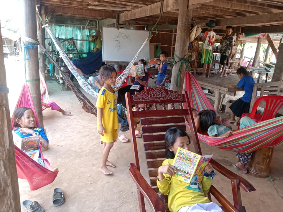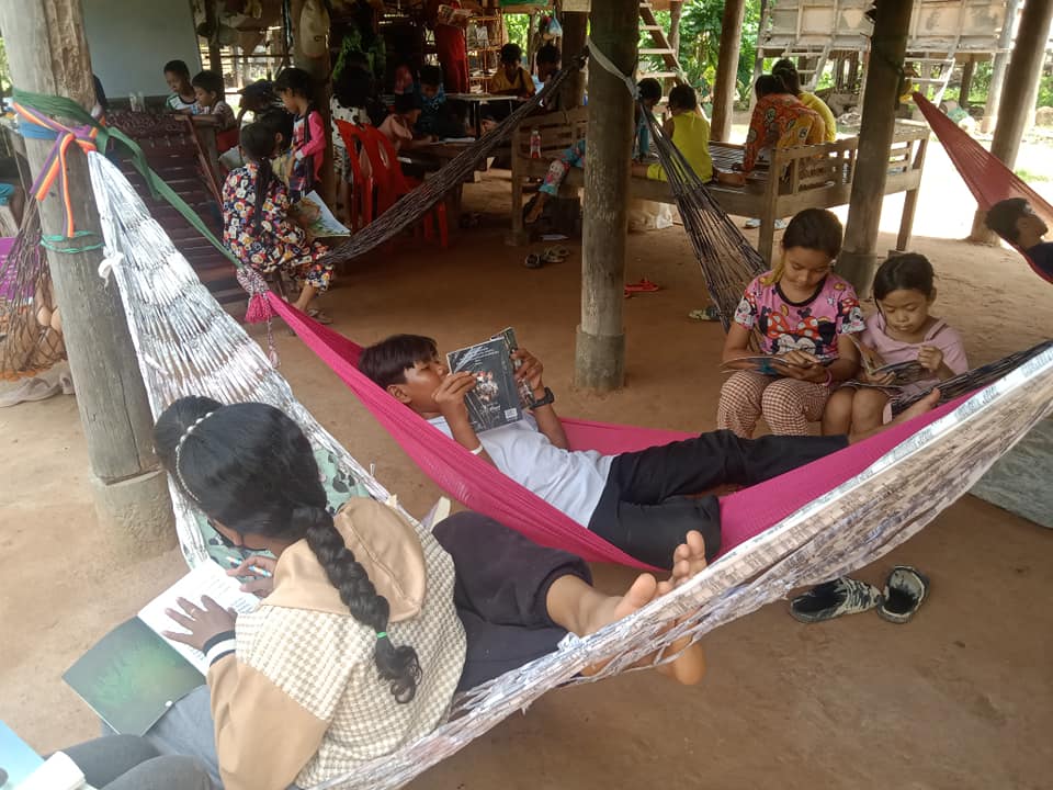 បណ្ណាល័យផ្ទះខ្ញុំ រៀបចំធ្វើនៅខាងក្រោមផ្ទះ មានធ្នើរដាក់សៀវភៅចម្រុះ ទាំងសៀវភៅសម្រាប់កុមារ និងយុវជន សៀវភៅអប់រំ សៀវភៅលើកទឹកចិត្ត សៀវភៅប្រលោមលោក សៀវភៅអប់រំគំនិតជាច្រើនទៀត។ កុមារ និងយុវជន តែងមកអានជុំគ្នានៅលើគ្រែខាងក្រោមផ្ទះ ខ្លះអង្គុយអានលើអង្រឹងប្រកបដោយបរិយាកាសរីករាយ។