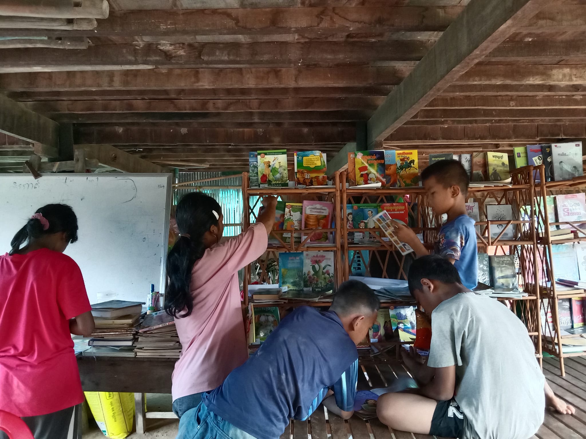 យុវតី ស៊ន់ សុរិយា យកទីធ្លាក្រោមផ្ទះធ្វើបណ្ណាល័យសាធារណៈ ដើម្បីបណ្ដុះទម្លាប់អានដល់ក្មេងៗ ​និងយុវជនក្នុងសហគមន៍