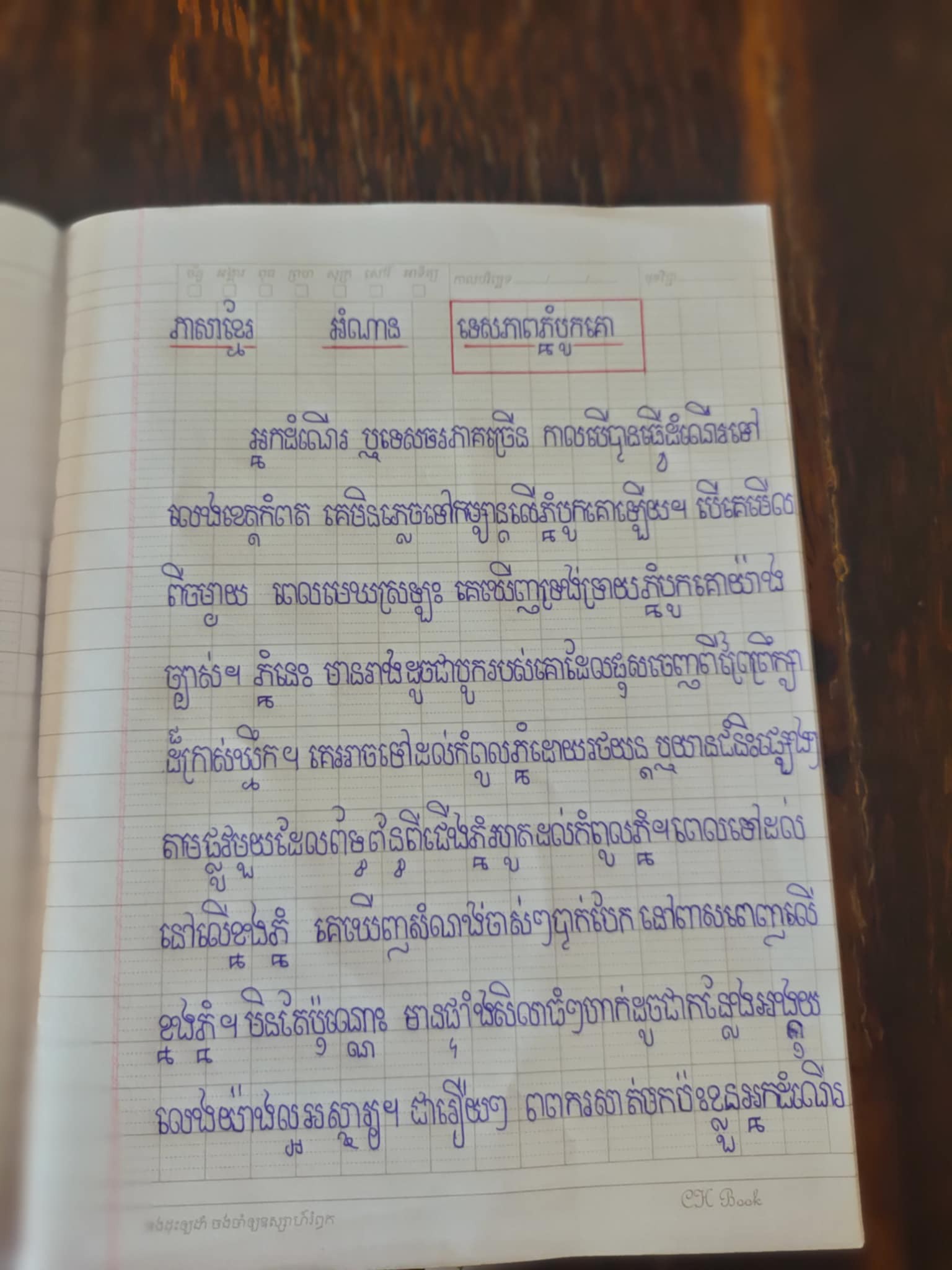 “កុមារីរូបនេះ រៀនសរសេរឱ្យស្អាត មានគំនិតច្នៃប្រតិដ្ឋ សិល្បៈក្នុងការបង្ហាញចេញពីក្នុងខ្លួនល្អ រួមទាំងការព្យាយាមទើបអាចសរសេរបានស្អាតបែបនេះ”