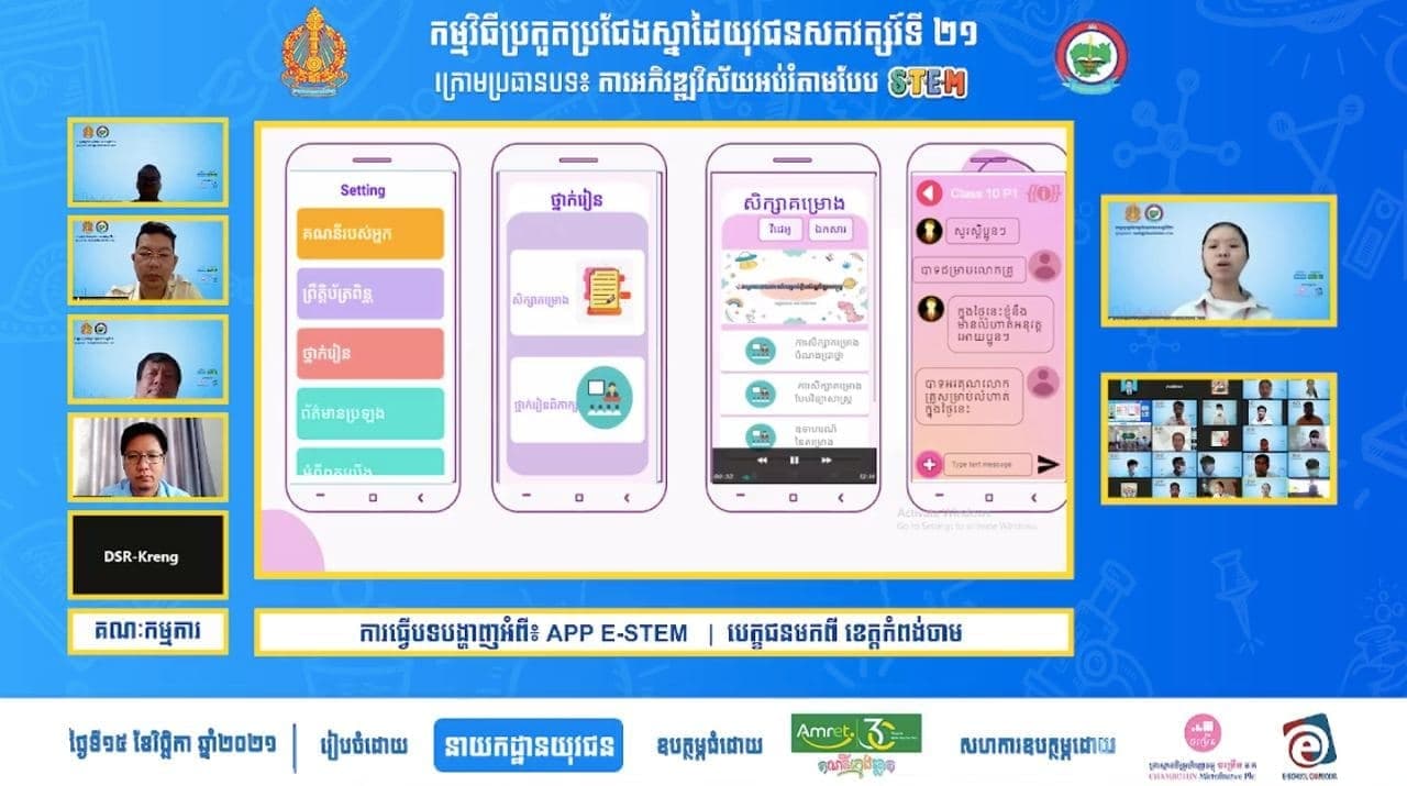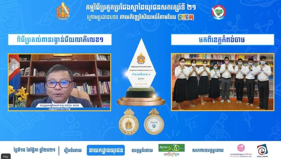 ភ្នំពេញ – ក្រោយពីធ្វើបទបង្ហាញអស់រយៈពេលពេញមួយថ្ងៃកាលពីថ្ងៃទី១៥ វិច្ឆិកា ឆ្នាំ២០២១កន្លងទៅ គេបានរកឃើញម្ចាស់ជ័យលាភី នៃការប្រកួតប្រជែងស្នាដៃយុវជនសតវត្សរ៍ទី២១ ក្រោមប្រធានបទ «ការអភិវឌ្ឍវិស័យអប់រំតាមបែប STEM» ហើយ ដោយក្នុងនោះជ័យលាភីលេខ១ បានទៅលើក្រុមប្រឹក្សាយុវជនខេត្តកំពង់ចាមលើគម្រោង “App E-STEM”, ជ័យលាភីលេខ២ បានទៅលើក្រុមប្រឹក្សាយុវជនខេត្តកែបលើគម្រោង “តុ” និងជ័យលាភីលេខ៣ បានទៅលើក្រុមប្រឹក្សាយុវជន រាជធានីភ្នំពេញលើគម្រោង “នាឡិកាវៃឆ្លាត S-Watch” ។