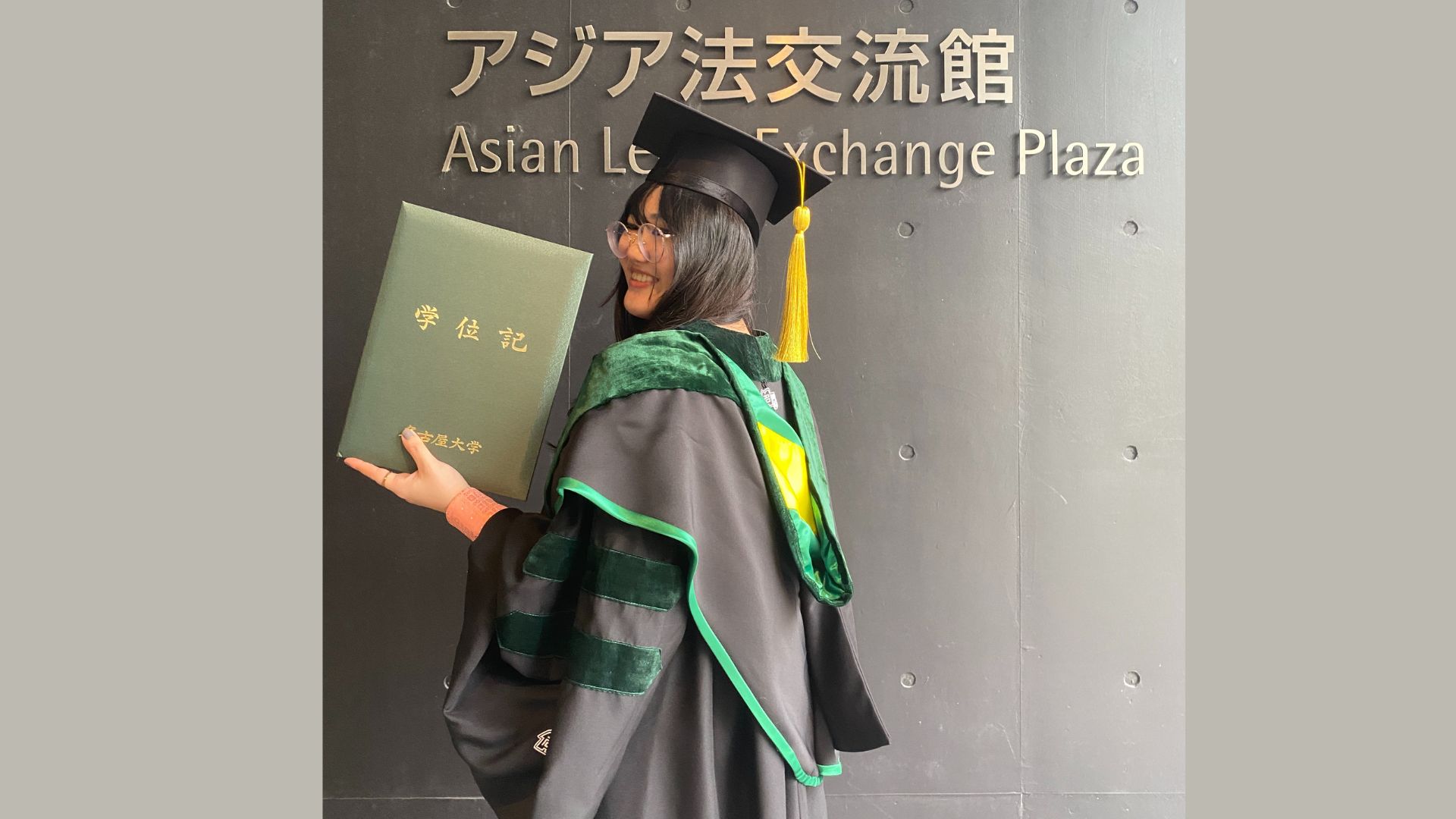 អតីតនិស្សិតអាហារូបករណ៍រូបនេះបន្តថា នៅក្នុងការសិក្សាថ្នាក់បរិញ្ញាបត្រជាន់ខ្ពស់នេះ កញ្ញា បានរៀនអំពីថ្នាក់ច្បាប់នានា រួមមាន ថ្នាក់ច្បាប់ពាក់ព័ន្ធនឹងកម្មសិទ្ធិបញ្ញា នីតិគ្រួសារ ក្រមរដ្ឋប្បវេណី ច្បាប់ពាណិជ្ជកម្ម ច្បាប់អន្តរជាតិ និងច្បាប់ផ្សេងៗទៀតរបស់ប្រទេសជប៉ុន (តាមការរើសមុខវិជ្ជានៃឆមាសនីមួយៗ) ជាមួយសាស្ត្រាចារ្យ ដែលមាននៅក្នុងថ្នាក់រៀនផ្ទាល់ និងការចុះទស្សនកិច្ចនៅស្ថាប័នរដ្ឋរបស់ប្រទេសជប៉ុន និងការសរសេរនិក្ខេបបទ ជាមួយគ្រូដឹកនាំចំនួនមួយដើម្បីបញ្ចប់ថ្នាក់បរិញ្ញាបត្រជាន់ខ្ពស់។