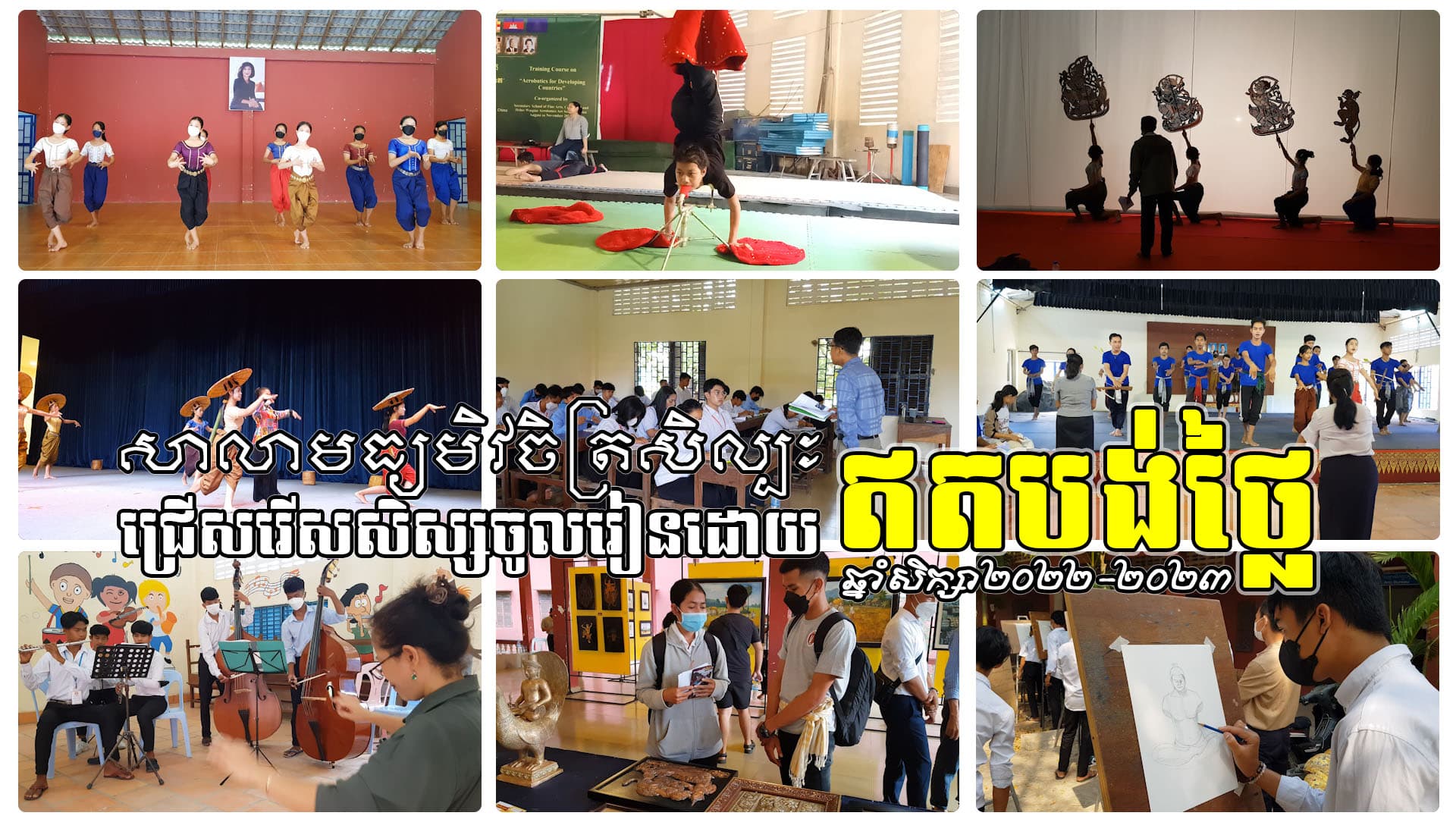 ភ្នំពេញ – សាលាមធ្យមវិចិត្រសិល្បៈប្រកាសជ្រើសរើសសិស្សចូលរៀនឥតគិតថ្លៃជំនាញសិល្បៈនៅសាលាតូរ្យតន្រ្តីឆ្នាំសិក្សា២០២២-២០២៣ ។ ការជ្រើសរើសសិស្សចូលរៀនមានសាលាចំនួន៥ គឺ សាលាតូរ្យតន្រ្តី សាលារបាំ សាលាល្ខោន សាលាសៀក និងសាលាសិល្បៈសូនរូប ។