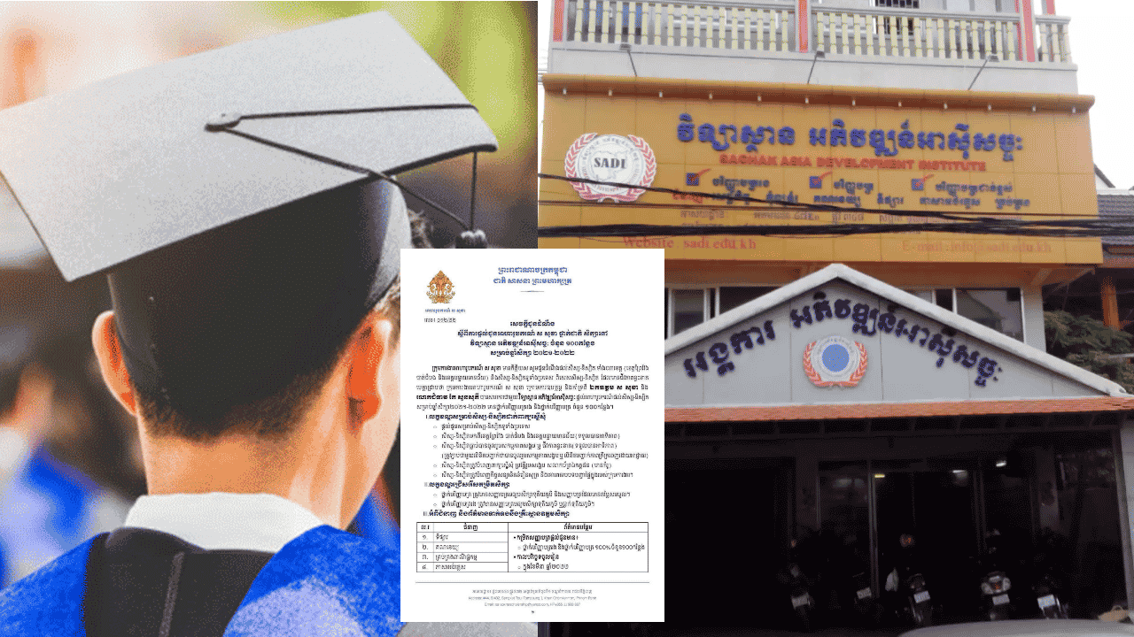 ភ្នំពេញ – ជាឱកាសដ៏ល្អមួយសម្រាប់សិស្សនិស្សិតដែលកំពុងស្វែងរកការសិក្សានៅថ្នាក់ឧត្តមសិក្សា ដោយពេលនេះ ឯកឧត្តម ស សុខា បានប្រកាសផ្តល់អាហារូបករណ៍ សិក្សាថ្នាក់បរិញ្ញាបត្រ និងបរិញ្ញាបត្ររងចំនួន ១០០កន្លែង សម្រាប់ឆ្នាំសិក្សា ២០២១-២០២២ នៅវិទ្យាស្ថាន អភិវឌ្ឍន៍អាស៊ីសច្ចៈ ដោយមិនតម្រូវឱ្យនិស្សិតបង់ថ្លៃរដ្ឋបាលអ្វីនោះឡើយ។
