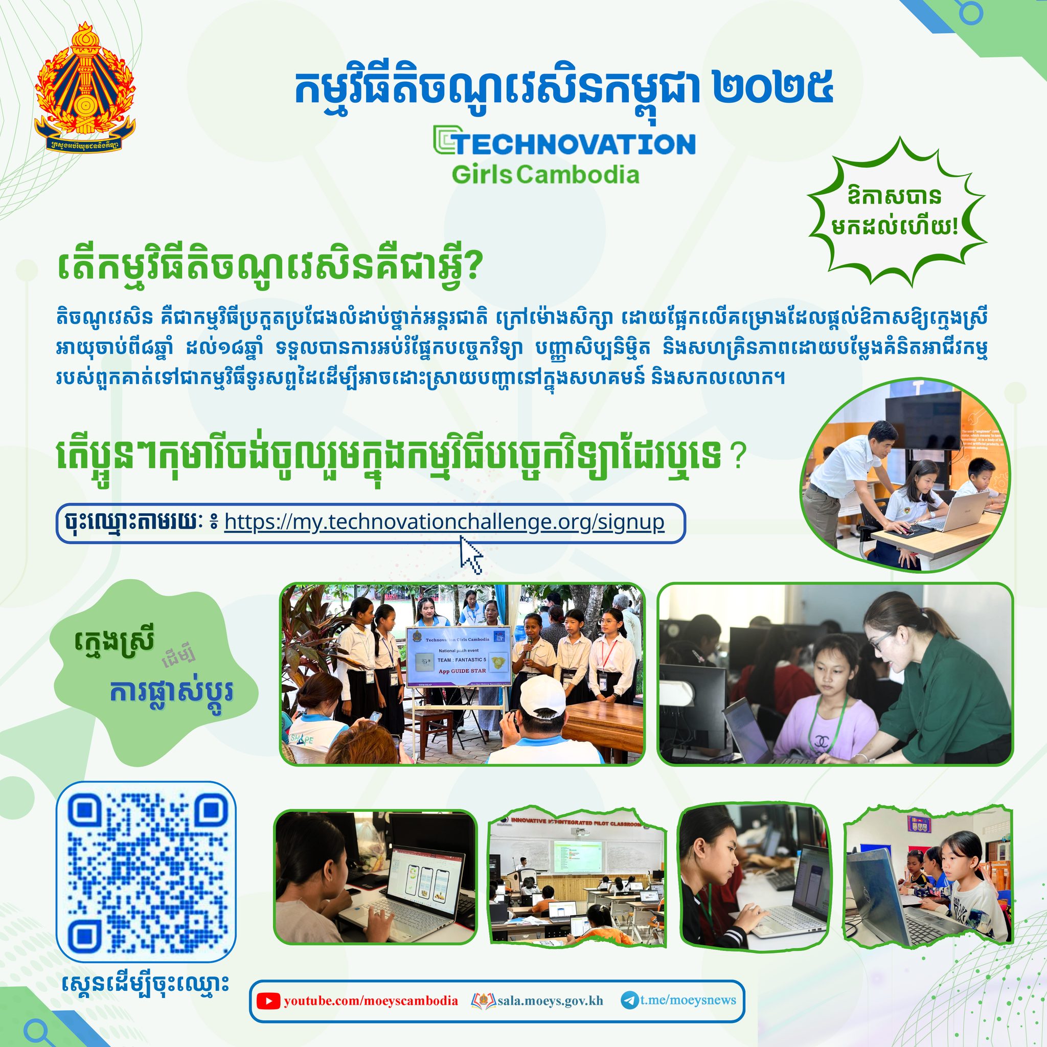 ក្រសួងអប់រំជ្រើសរើសកុមារីចូលរួមប្រកួតកម្មវិធីតិចណូវេសិនកម្ពុជា ឆ្នាំ២០២៥