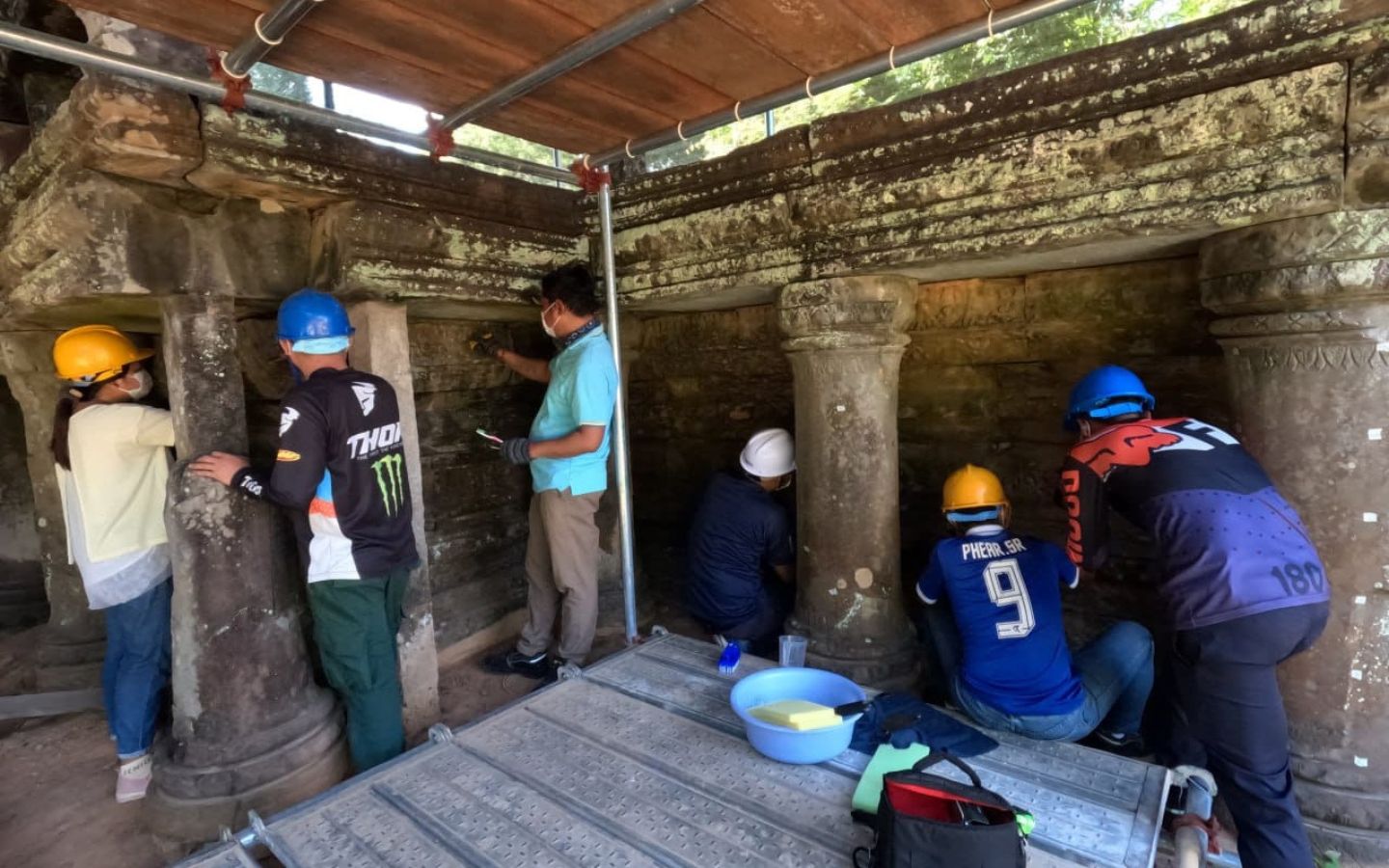 កញ្ញា Helen Jacobsen គ្រូបង្រៀនជនជាតិអាល្លឺម៉ង់ មានប្រសាសន៍ថា កញ្ញាកំពុងប្រឹងប្រែងបង្រៀនកូនខ្មែរឱ្យចេះលាងសម្អាតថ្មប្រាសាទបុរាណ ចេះបន្សាបជាតិអំបិលចេញពីថ្ម ព្រមទាំងចេះជំនាញពង្រឹងថ្មប្រាសាទបុរាណឱ្យរឹងមាំឡើងវិញផង។ តាមកញ្ញា Helen ជំនាញអភិរក្សថ្មប្រាសាទបុរាណនេះ មានដូចជា ការលាងសម្អាតថ្មដោយប្រើទឹក និងការលាងដោយប្រើសារជាតិគីមីជាដើម។