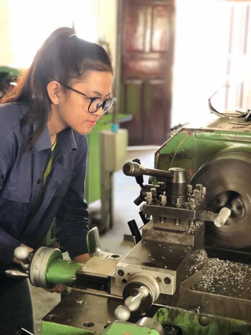 “ខ្ញុំត្រូវទៅផ្សារដែក ទៅកាន់ម៉ាស៊ីនធំៗដូចមនុស្សប្រុស ក្នុងនោះវាក៏ប្រើកម្លាំងខ្លាំងណាស់ដែរ ដោយត្រូវលើកដែកជាដើម ។ ដូច្នេះសិក្សាជំនាញមួយនេះ យើងត្រូវប្រើកម្លាំង ត្រូវបញ្ជាម៉ាស៊ីនធំៗ ដែលមើលទៅវាគួរឱ្យខ្លាច ប្រសិនបើយើងអត់ដែលឃើញវា ឬក៏បានប្រើប្រាស់វាពីមុនមក“
